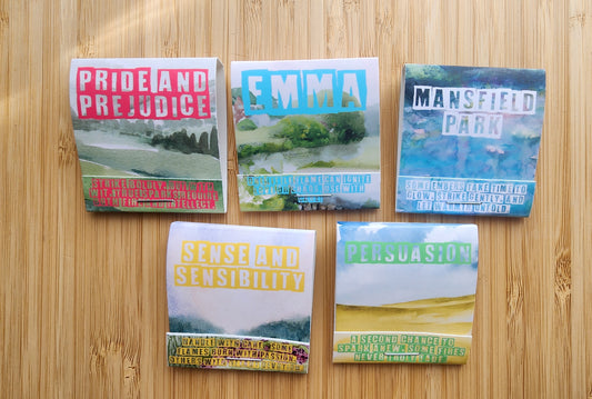 Set of 5 Literary Handmade Safety Matchbook inspired by Jane Austen | Funny Bookish Goods | Decorative Novelty Matches | Pride and Prejudice Emma